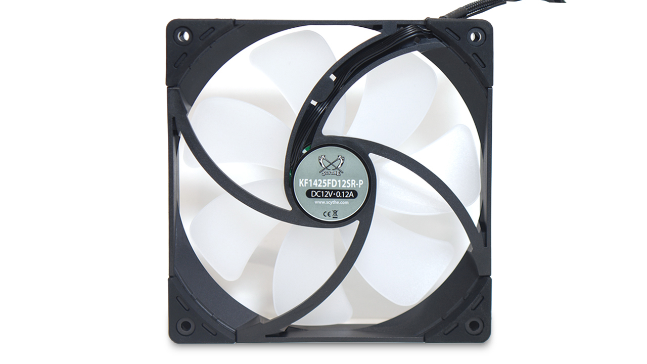 Scythe Kaze Flex 140 Square RGB PWM. Type: Fan, Fan diameter: 14 cm, Rotational speed (min): 300 RPM, Rotational speed (max): 1200 RPM, Noise level (low speed): 4.19 dB, Noise level (high speed): 19.4 dB, Maximum airflow: 67.2 cfm, Minimum air pressure: 0.08 mmH2O, Maximum air pressure: 1.25 mmH2O. Voltage: 12 V. Width: 140 mm, Depth: 27 mm, Height: 140 mm. Product colour: Black, White
