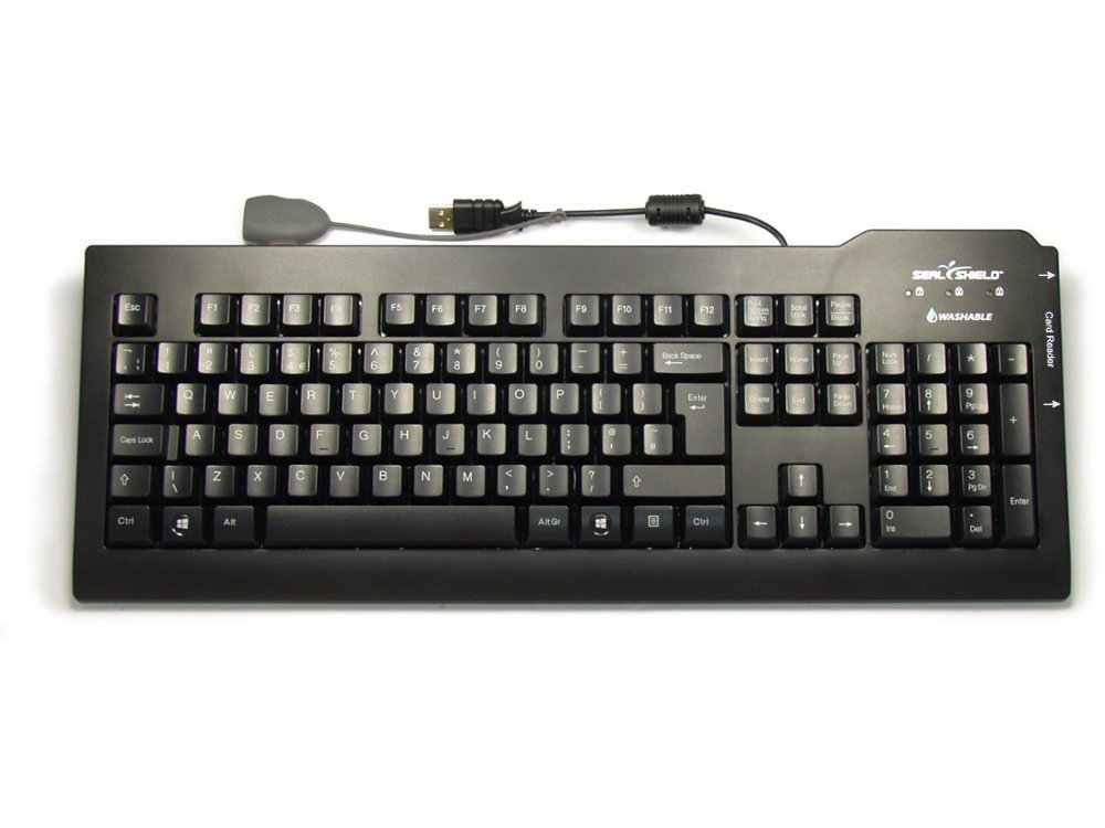 The Seal Shield smart card keyboard is the original, medical grade, dishwasher safe, antimicrobial keyboard used by hospitals worldwide.The Seal Shield smart card keyboard starts with patent pending electronic IP68 waterproofing technology. Electronic components are sealed in a watertight housing safely tucked into this award-winning keyboard solution. Enjoy True Type typing comfort from the latest Seal Shield keyboard with full-travel IBM-style keys which are laser etched to prevent fading from