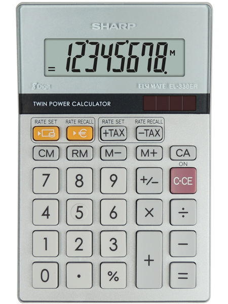 Desktop calculator with 8-digit display, Euro-conversion function.