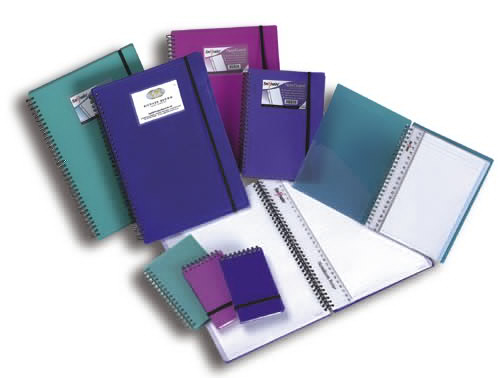 High quality wire-spiral notebook with elasticated closure. Detachable ruler, business card holder and inside pocket. Pages have a title strip and line markers to create columns, grids and tables. Rigid polypropylene cover in vivid Electra colours.