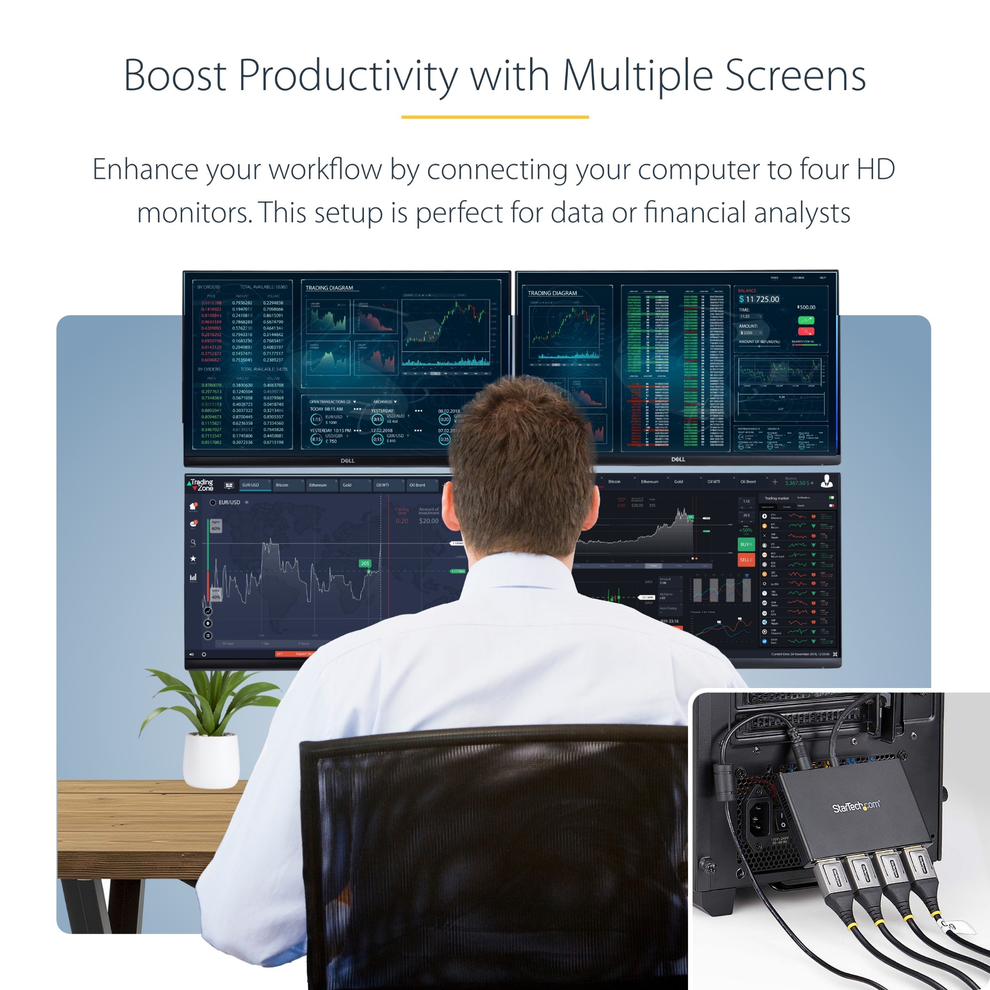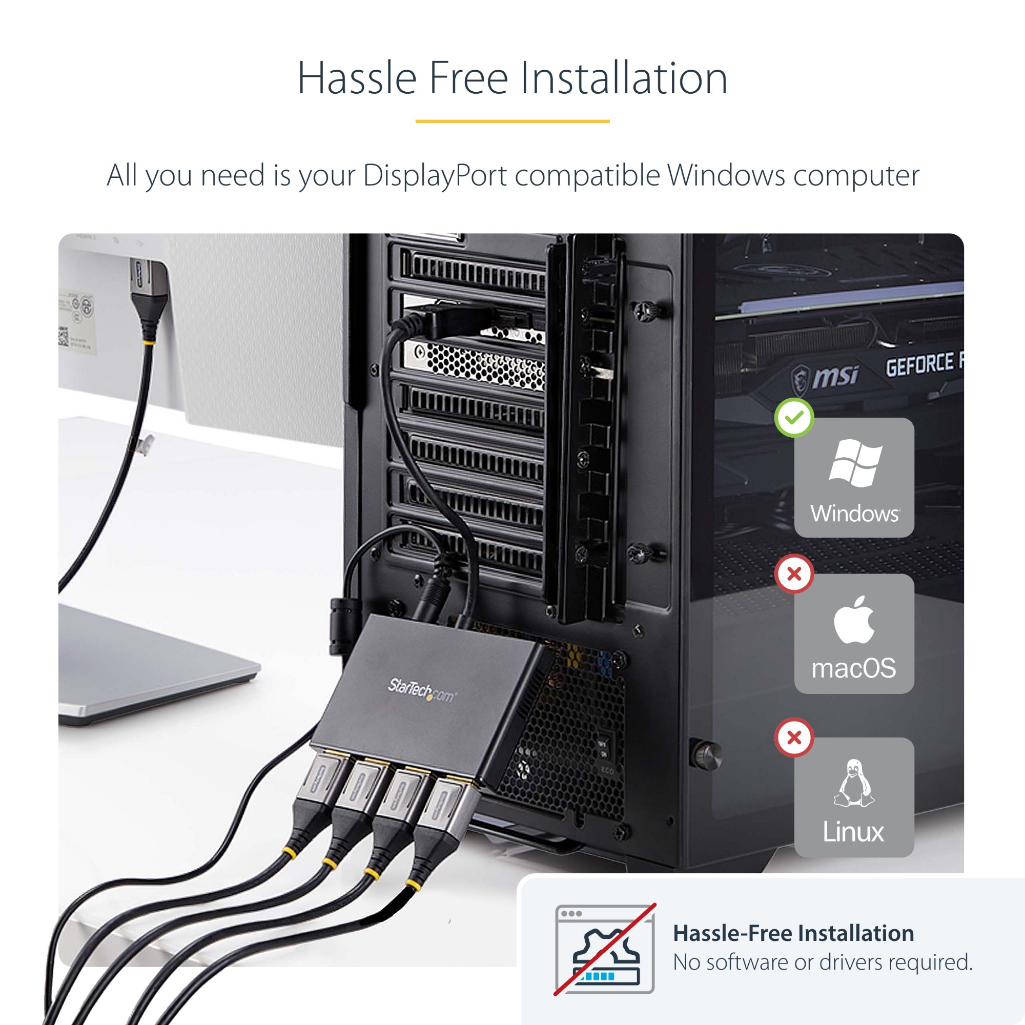 StarTech.com 4-Port Multi Monitor Adapter - DisplayPort 1.2 MST Hub - 4x 1080p - DisplayPort Video Splitter for Extended Desktop Mode on Windows PCs Only - DP to Quad DP Monitors