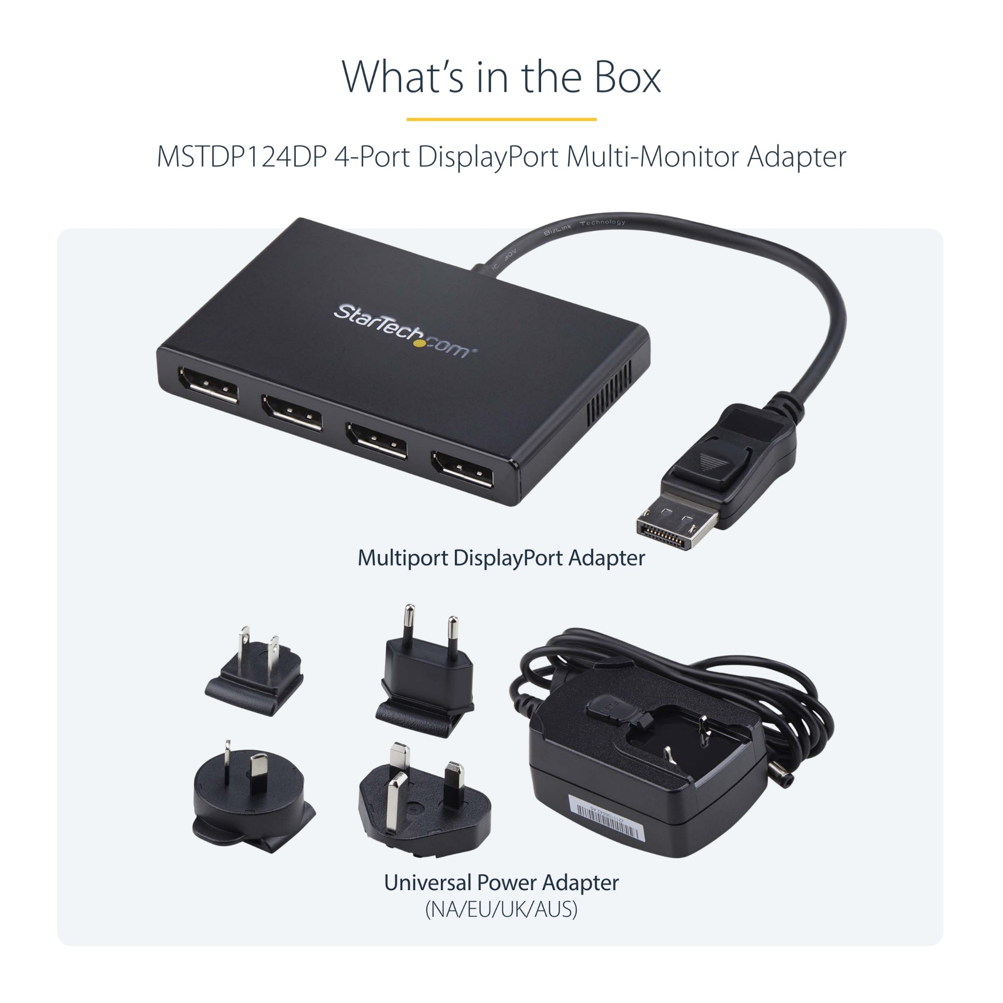 4-Port Multi Monitor Adapter, DisplayPort 1.2 MST Hub, 4x 1080p, Video Splitter for Extended Desktop Mode on Windows PCs Only, DP to Quad DP Monitors MST Hub - DP Multi Stream Transport Hub (MSTDP124DP) - Video splitter - 4 x DisplayPort - desktop - for P |
