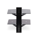 The shelves are height adjustable along the 13.6-inch (346mm) wall mount bracket, allowing for customization to accommodate various AV equipment sizes and configurations, such as video conferencing equipment or an AV receiver.