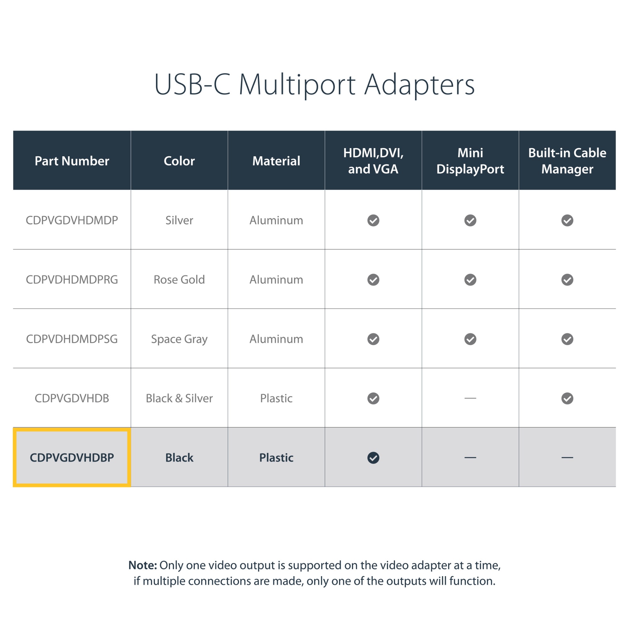 The CDPVGDVHDBP is backed by a StarTech.com 3-year warranty and free lifetime technical support.