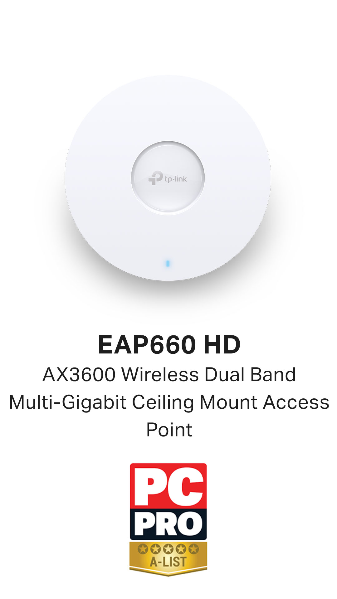 TP Link EAP660 HD AX3600 Ceiling Mount Dual-Band Wi-Fi 6 Access Point |