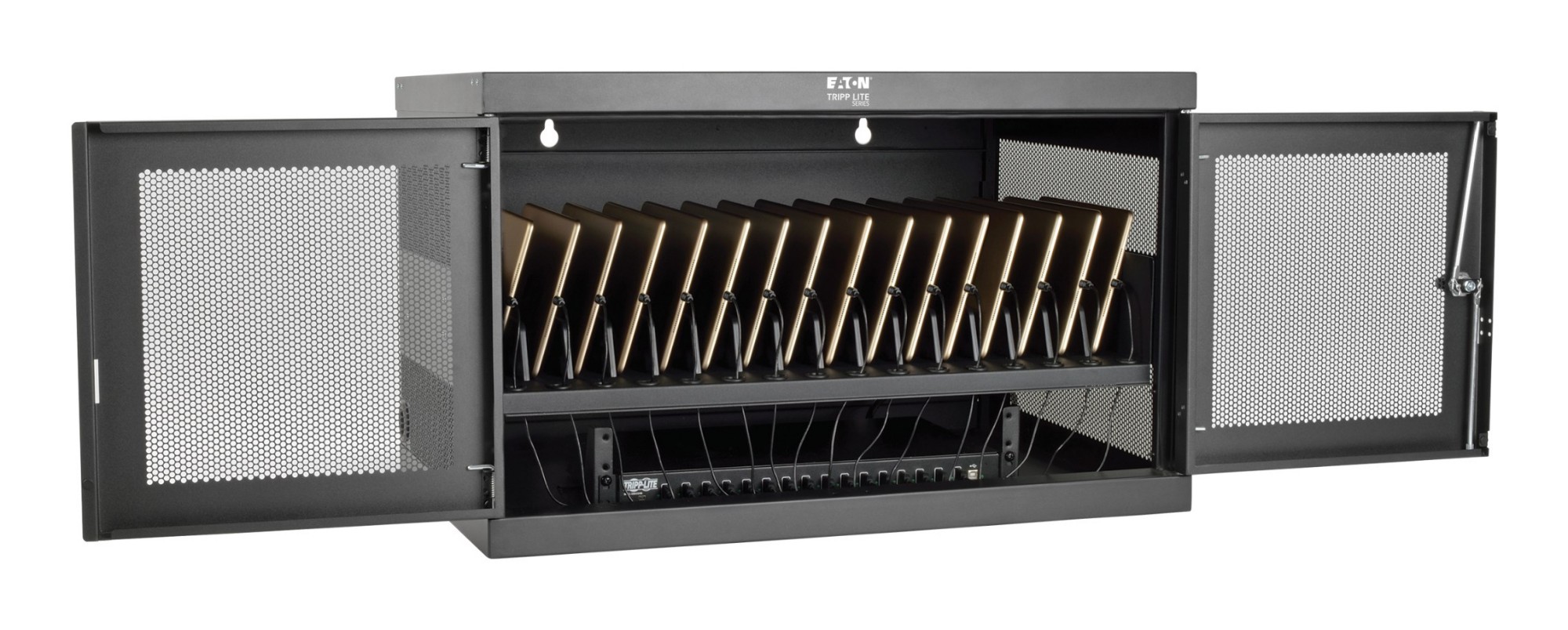 Tripp Lite 16-Device USB Charging Station Cabinet with Sync for iPad and Android Tablets, Wall-Mount and Cart Options, 230V, BS1363 to C13 Plug, Black