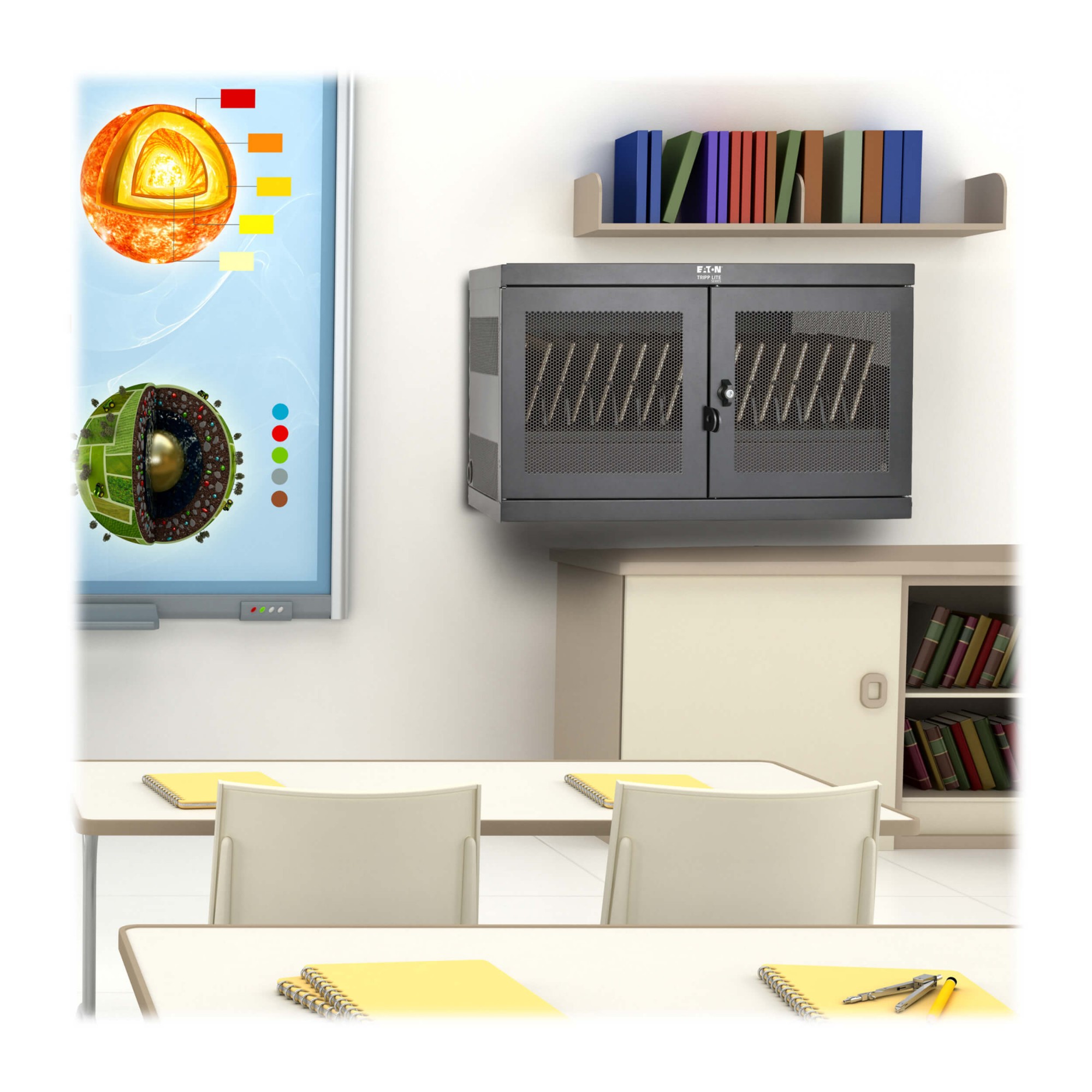 This charging cabinet provides fast charging, convenient syncing, secure storage and cord management for up to 16 iPad, Android, Surface and Kindle tablets, as well as smartphones and other USB devices. Ideal for education, office, commercial, retail, industrial and healthcare environments, this locking steel cabinet with a black powder-coated finish keeps valuable mobile devices safe, secure and always ready to use.