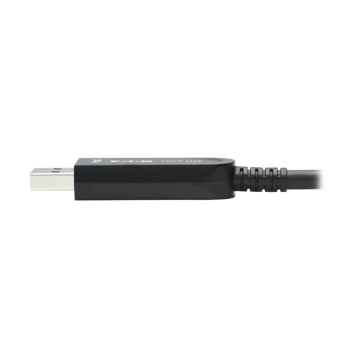 Because the fiber cable is slimmer and more flexible than standard copper USB cables, the U428F-15M-D321 is easier to install around corners and in hard-to-reach spaces behind equipment. It draws power from the connected device, so no external power supply is needed to transmit the USB signal across the longer distances unique to fiber optic cabling. Note
