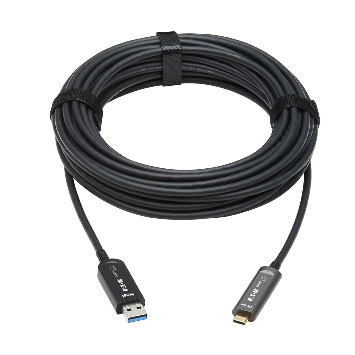 Tripp Lite U428F-15M-D321 USB-A to USB-C AOC Cable (M/M) - USB 3.2 Gen 2 (10Gbps) Plenum-Rated Fiber Active Optical - Data Only, Backward Compatible, Black, 15 m (49 ft.)