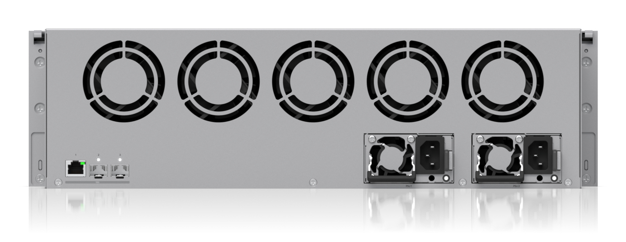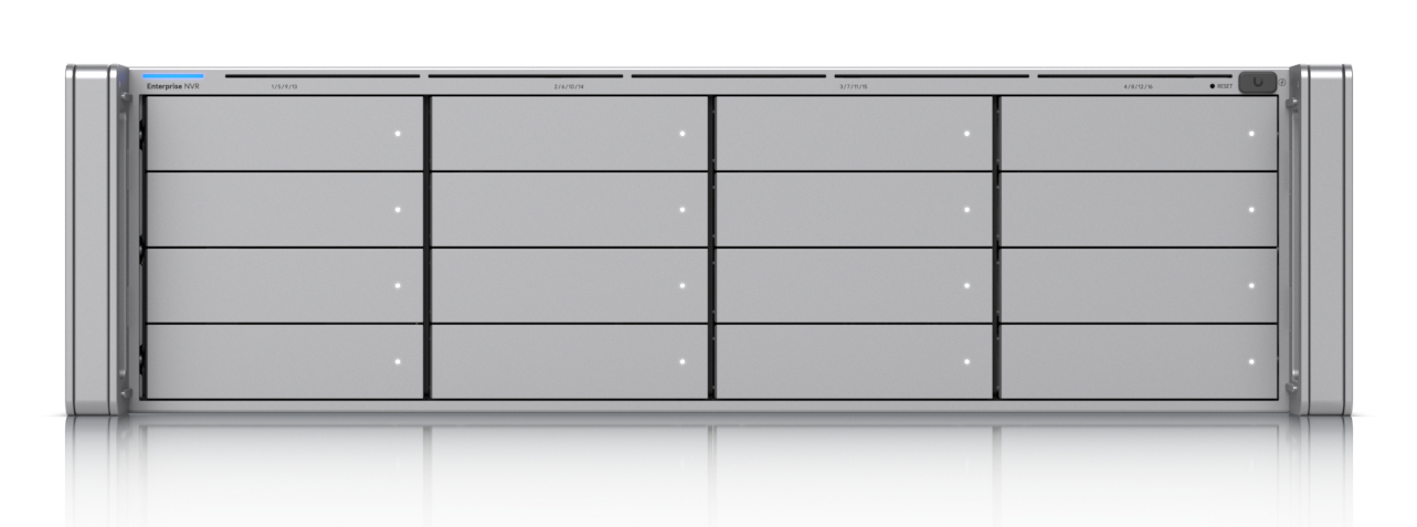 3U NVR with (16) 2.5/3.5” drive bays, supporting up to (70) 4K cameras or (210) Full HD cameras.