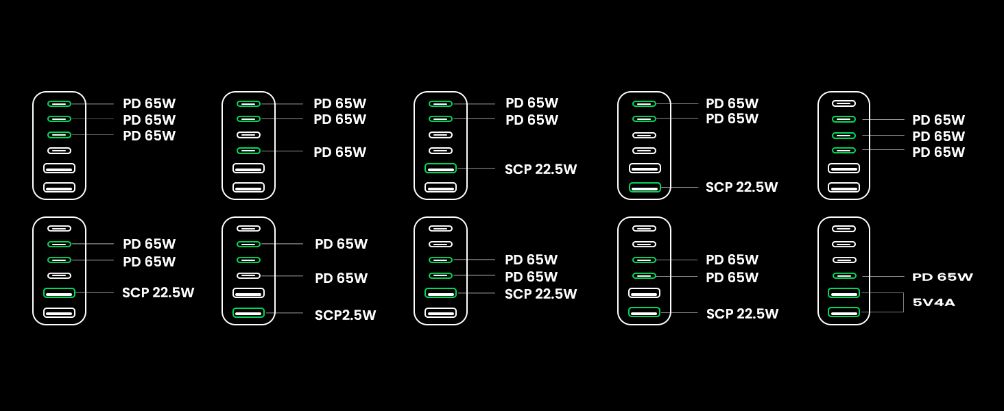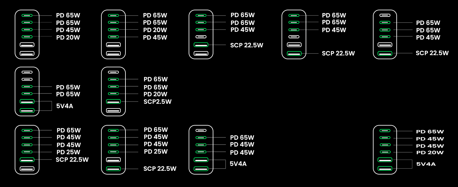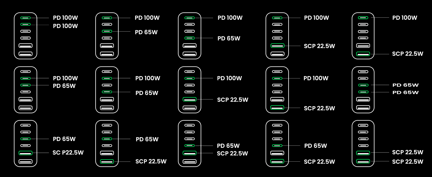4x USB C, 2x USB A, 200 W, 100 - 240 V, 50 / 60 Hz, 3.3 - 21 V, 1.5 - 5 A, Space Gray