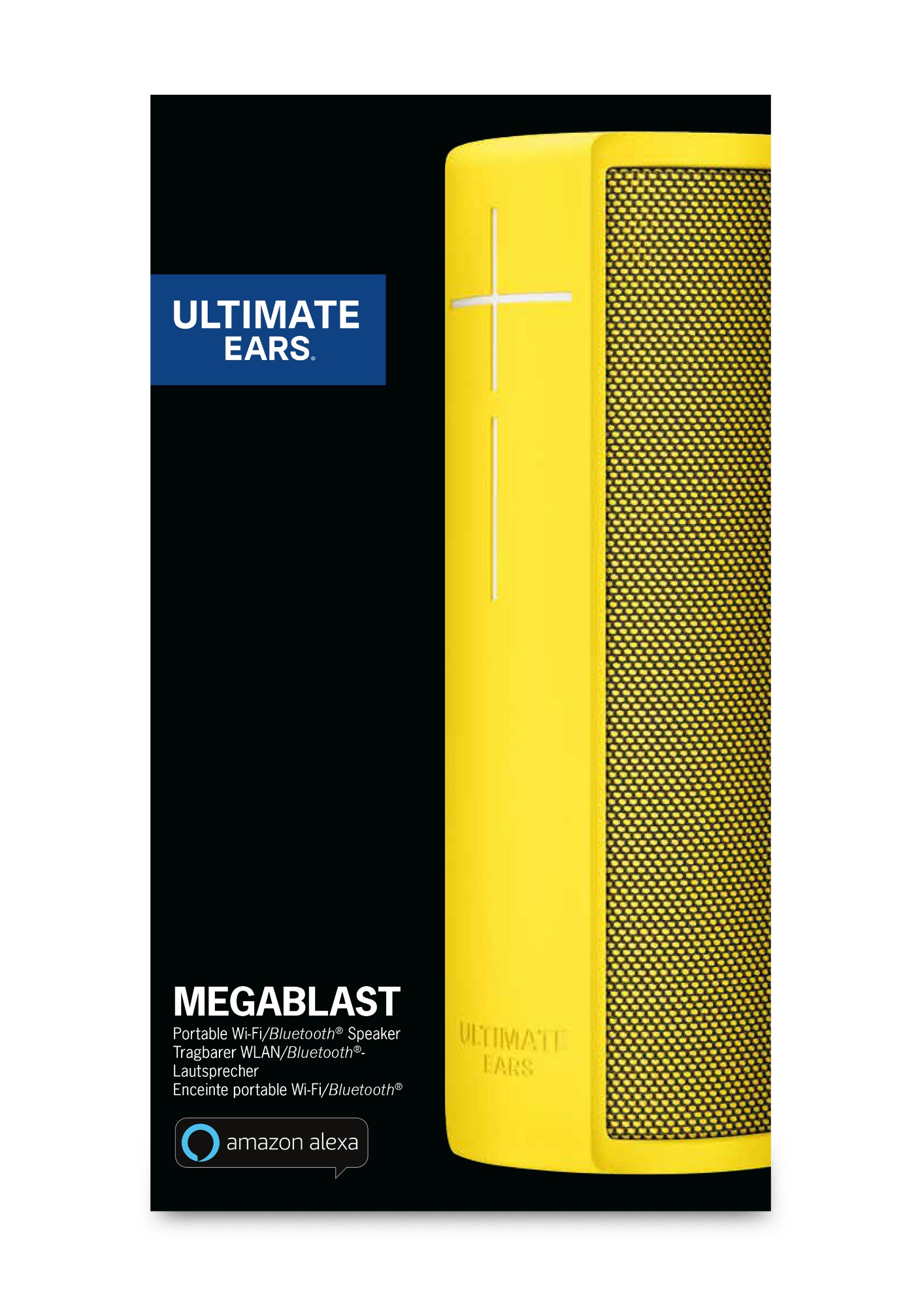 Meet Ultimate Ears MEGABLAST, our most powerful portable Wi-Fi/Bluetooth speaker with big, bassy 360° sound and hands-free voice control. Now with Amazon Alexa built-in, you and your crew can blast tunes, discover new music, order takeout and more, with just the power of your voice. Do it all at home or on the go, even take calls without killing the music whenever connected to Wi-Fi or a mobile hotspot. MEGABLAST is waterproof, rugged and stunning too – go from cocktail party to pool party with confidence and style. Just say it to play it with MEGABLAST from Ultimate Ears.