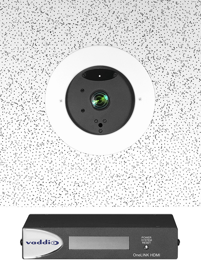 The DocCAM 20 HDBT has an in-ceiling, recessed design allowing it to blend into nearly any environment. Equipped with our popular OneLINK HDBaseT port, the DocCAM 20 HDBT easily connects to the Vaddio OneLINK HDMI extension system to reduce cabling and extend video, power, and control up to an installation distance of 328 ft (100M).