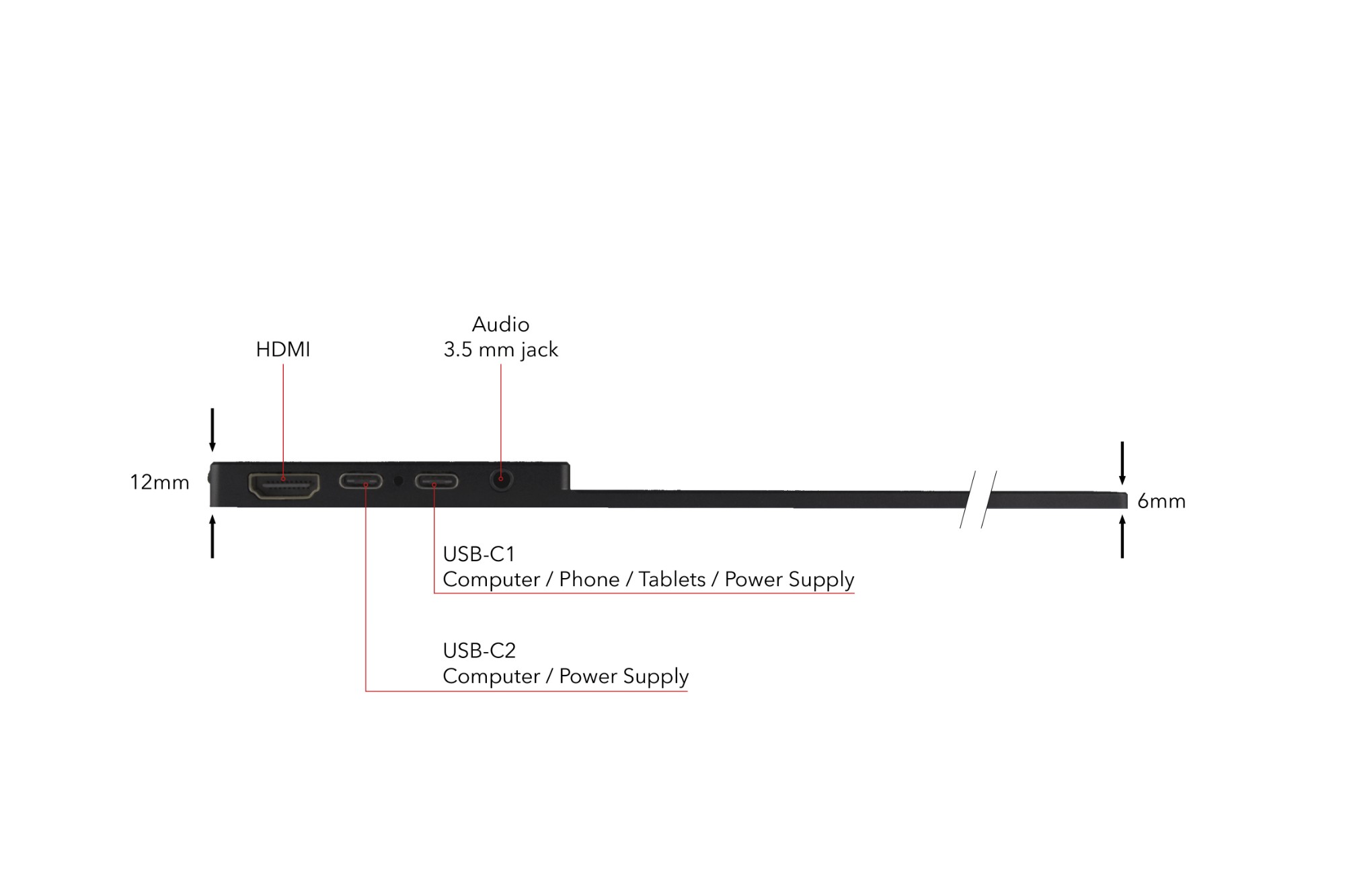 The portable monitor connects via USB-C meaning that power, data, and video is all transferred using a single cable. Just connect it to your laptop, Mac, tablet, phone, or games console, and start sharing screens!* There is also an HDMI cable included for those requiring connection via HDMI. Using HDMI requires the use of a power supply, which is also included. For touch function support, an additional USB cable is required. The power supply also supports longer use for devices connected via USB-C.