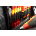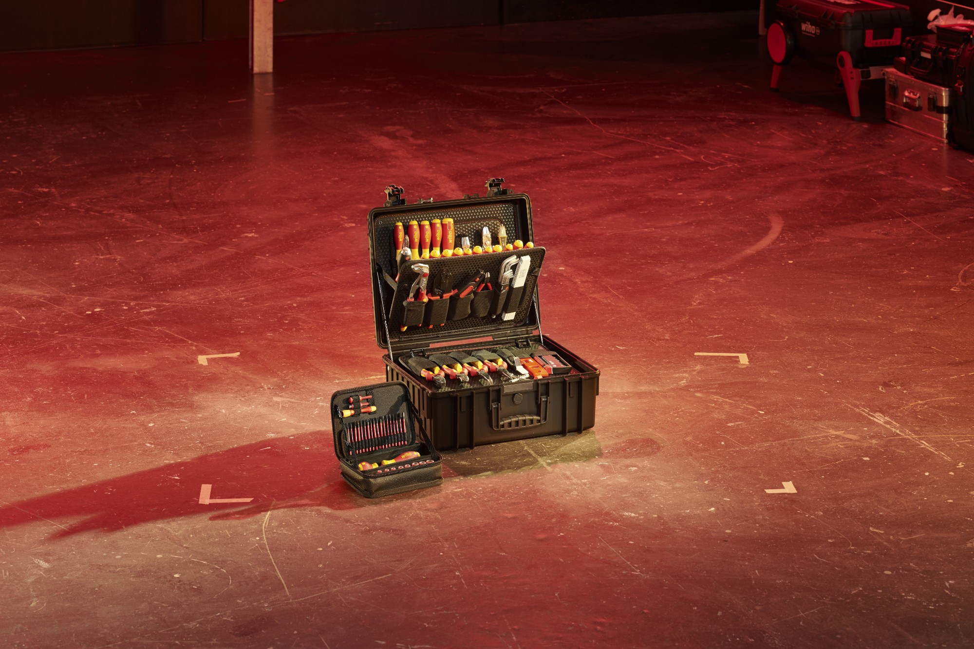 The tool inserts in the electrician's 83-piece XL Competence Case are designed to help you work efficiently by ensuring that all tools are quickly and easily accessible. Thanks to an extensive kit, electricians have the right device for every application, such as the LiftUp electric magazine bit holder, fully insulated screwdrivers from the Wiha Slim line or TriCut installation pliers. The large storage space in the toolbox also offers ample space for more small parts and other equipment. Made of robust polypropylene, the cases also feature gas-filled shock absorbers, which hold the lid in different positions, preventing it from closing automatically. The chances of fingers getting caught or other injuries are minimised as a result.