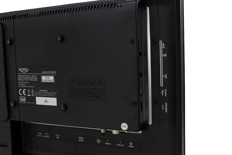 Xoro XOR400716. Display diagonal: 47 cm (18.5"), Display resolution: 1366 x 768 pixels, HD type: HD, Display technology: LED, Screen shape: Flat, LED backlighting type: Direct-LED, Native aspect ratio: 16:9. Digital signal format system: DVB-C, DVB-S2, DVB-T2. Product colour: Black