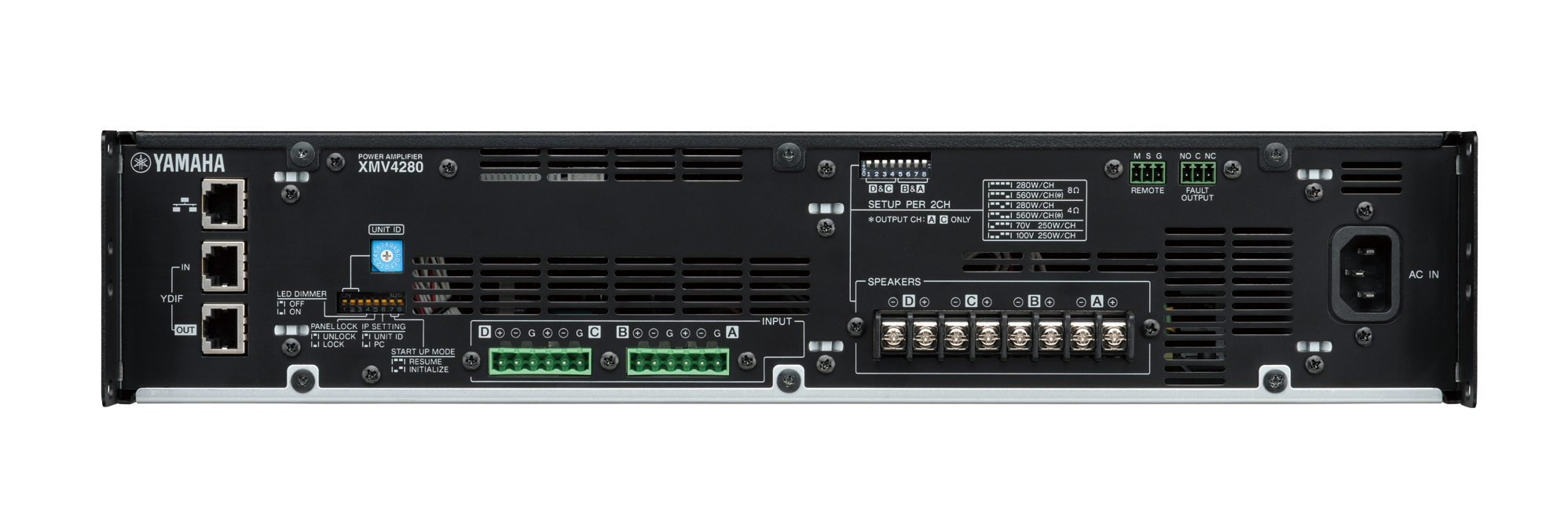 XMV amplifiers come equipped with either the newly developed YDIF digital audio format, or Audinate’s digital audio network Dante. YDIF allows easy setup with the use of Ethernet cables while Dante models can be used for larger venues where long distant cabling is required.