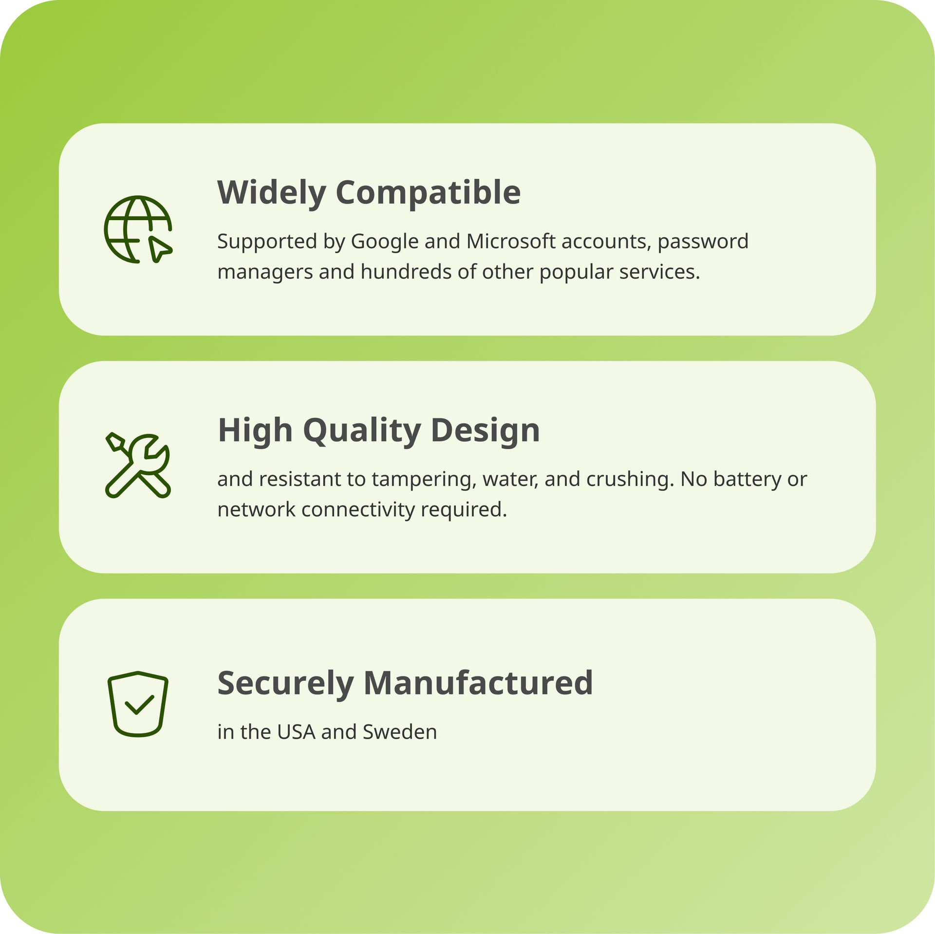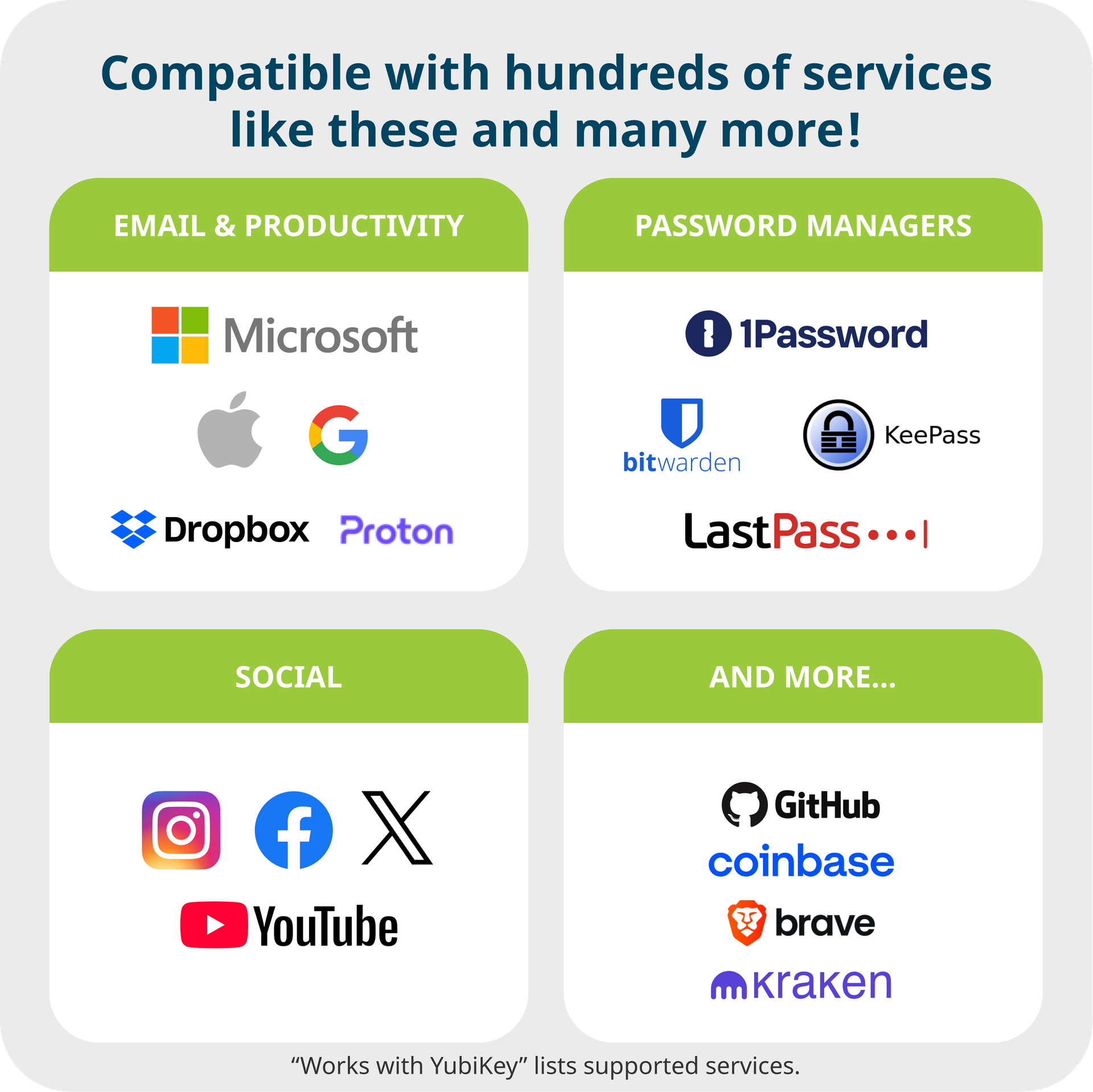 • YubiKeys reduce the risk of unauthorized access to online accounts, emails, financial transactions, and sensitive information.