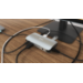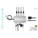 Brushed aluminium body grants the docking station sufficient durability and resilience even during frequent travel. The integrated USB-C cable is sufficiently long for comfortable connection even if the USB-C port is located in the upper portion of the screen frame (typical for hybrid laptops/tablets).